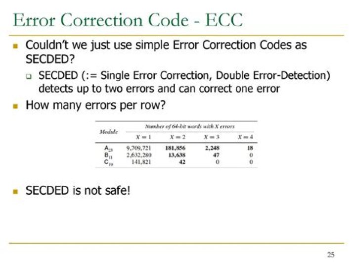 An ECC-capable memory controller can generally detect and correct errors of a single bit per word (the unit of bus transfer), and detect (but not correct) errors of two bits per word.