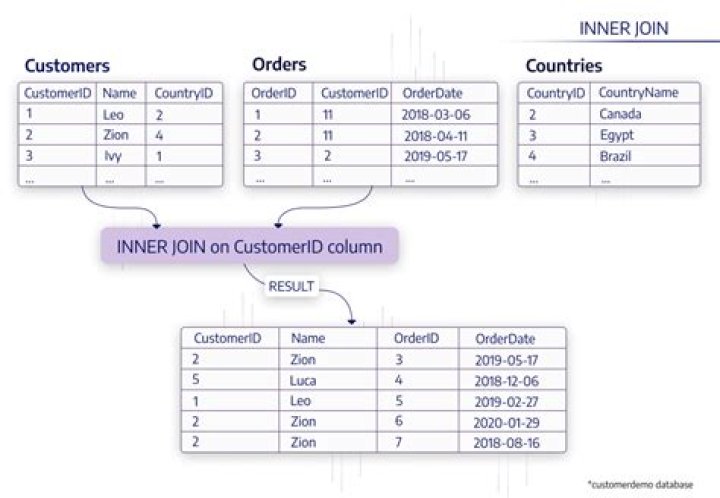 To include the joined field, include the field name in the SELECT statement — in this case, Categories. CategoryID. You can also link several ON clauses in a JOIN statement, using the following syntax: SELECT fields FROM table1 INNER JOIN table2 ON table1.