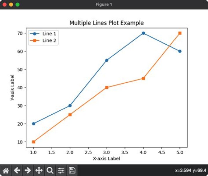 You can also plot more than one line on the same chart/graph using matplotlib in python. Import necessary libraries (pyplot from matplotlib for visualization, numpy for data creation and manipulation, pandas for Dataframe and importing the dataset, etc).