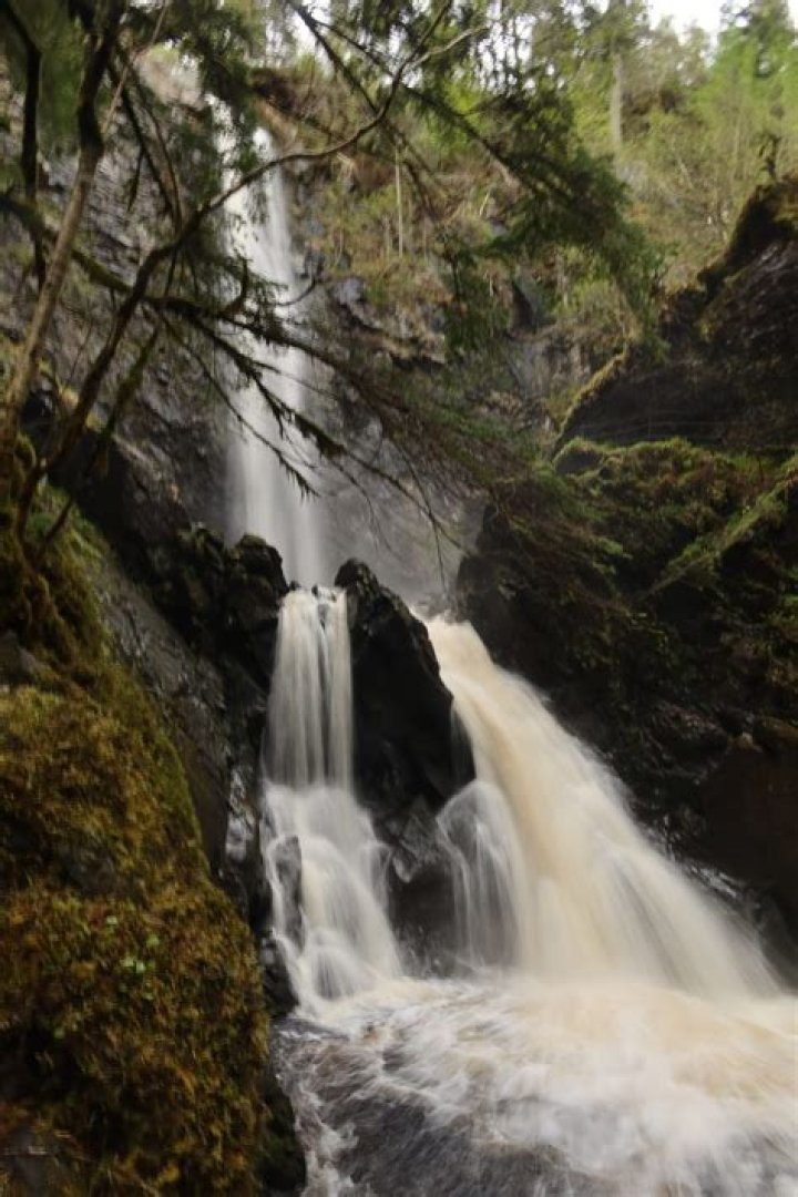 The stunning Plodda Falls waterfall is 151 feet (46 metres) tall, inside Glen Affric National Nature Reserve, surrounded by majestic Douglas firs whose needles smell of tangerines.