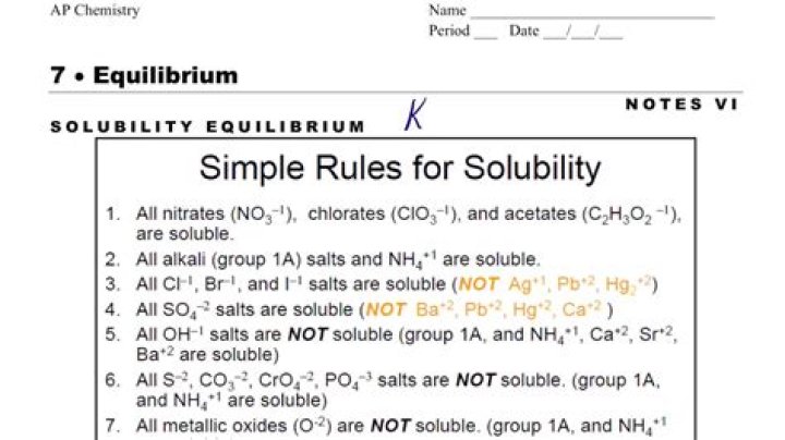Solubility Rules: You need to memorize the general solubility rules that are attached. These rules will allow you to predict whether a precipitate will form during a double replacement reaction. These rules are extremely important to your success in AP Chemistry!