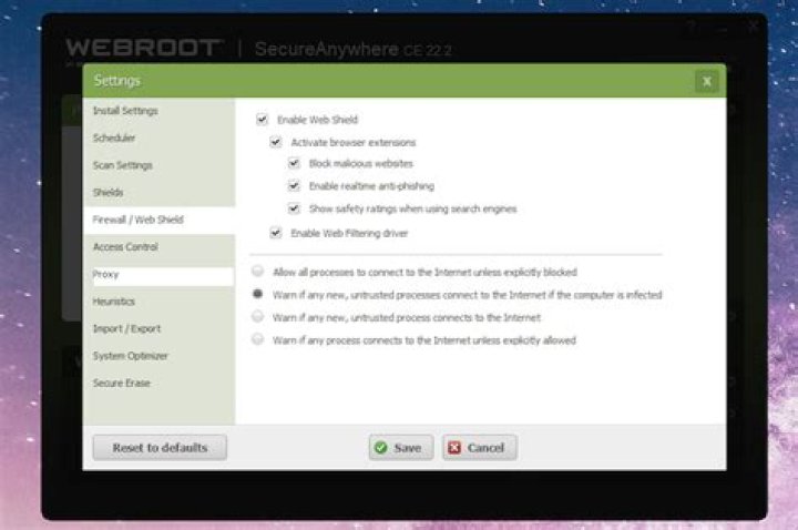 All of Webroot’s packages include protections from malware, such as viruses, ransomware, phishing, keyloggers (who hack into your Wi-Fi connection to monitor your keyboard keystrokes), and spyware. Webroot also provides a firewall, a network protection monitor, and webcam security.