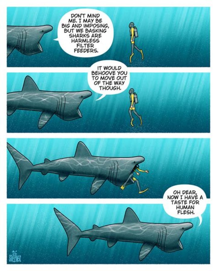 Has a basking shark ever swallowed a human?
