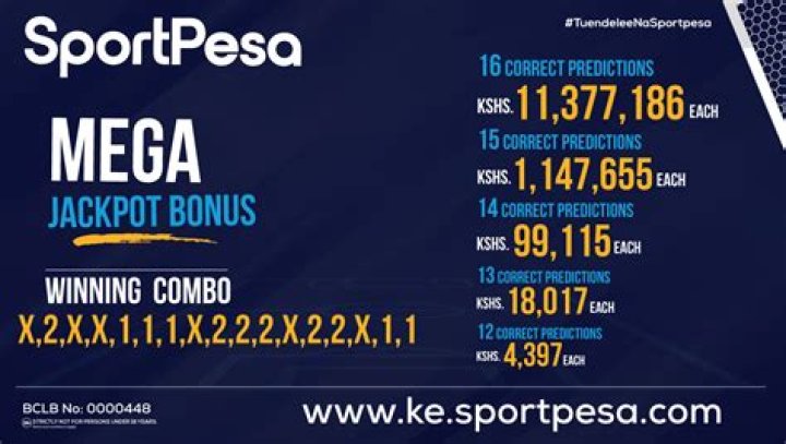 SPORTPESA JACKPOT We bring you the opportunity to win big with our very own 20/20 Sports Jackpot. For your chance to win the jackpot, pick and correctly predict the correct 1×2 outcome on 20 out of 20 fixtures.