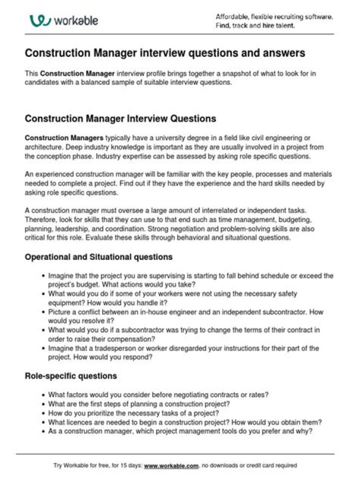 6 Questions to Ask Prospective Candidates for a Construction Manager Position