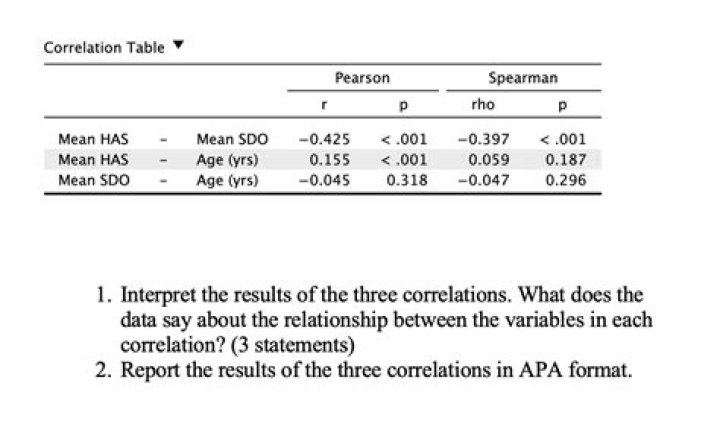 We use the following general structure to report a Pearson’s r in APA format: A Pearson correlation coefficient was computed to assess the linear relationship between [variable 1] and [variable 2]. There was a [negative or positive] correlation between the two variables, r(df) = [r value], p = [p-value]. What is this?