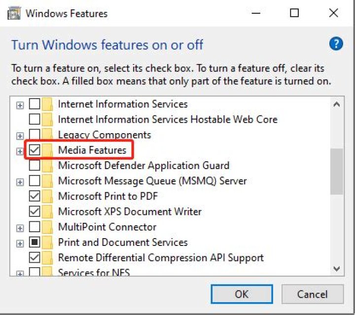 How do I turn on media features in Windows 10?