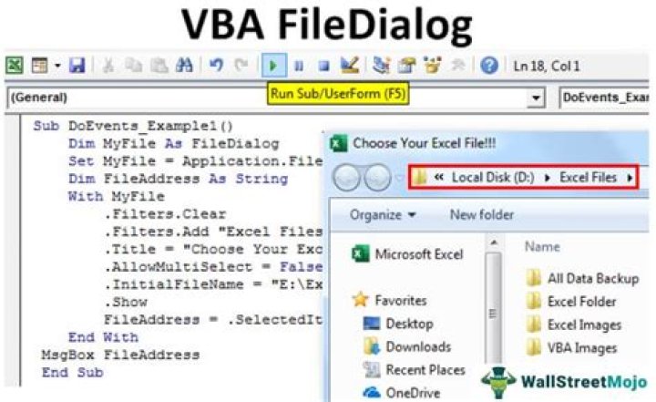 Excel VBA FileDialog – Example #1 Step 1: Go to the Developers tab and click on Visual Basic. Step 2: Open a Module from the Insert menu option as shown below. Step 3: Start the subprocedure to start working on example. Step 4: Declare a variable as Filedialog as shown below.