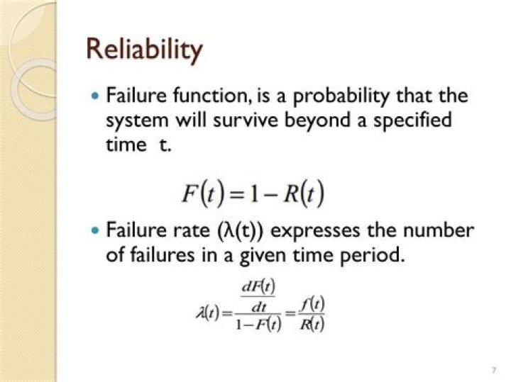 Reliability is calculated as an exponentially decaying probability function which depends on the failure rate. Since failure rate may not remain constant over the operational lifecycle of a component, the average time-based quantities such as MTTF or MTBF can also be used to calculate Reliability.