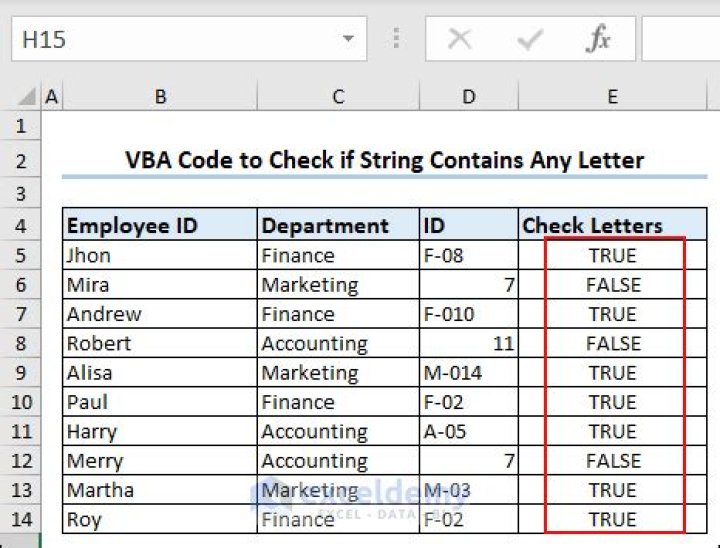 - For our example, the cell we want to check is A2, and the return value will be Yes.