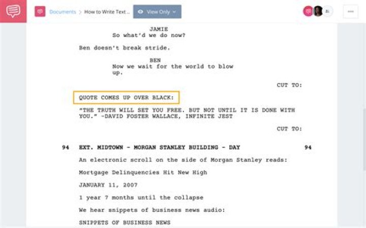 How do I have text on the screen? You can have text appear on the screen two ways—one over the movie or freeze frame, the other over black screen. For each you will use SUPER: before the text that should appear (text appears in quotes). For text over a Black Screen, write the scene heading: BLACK SCREEN.