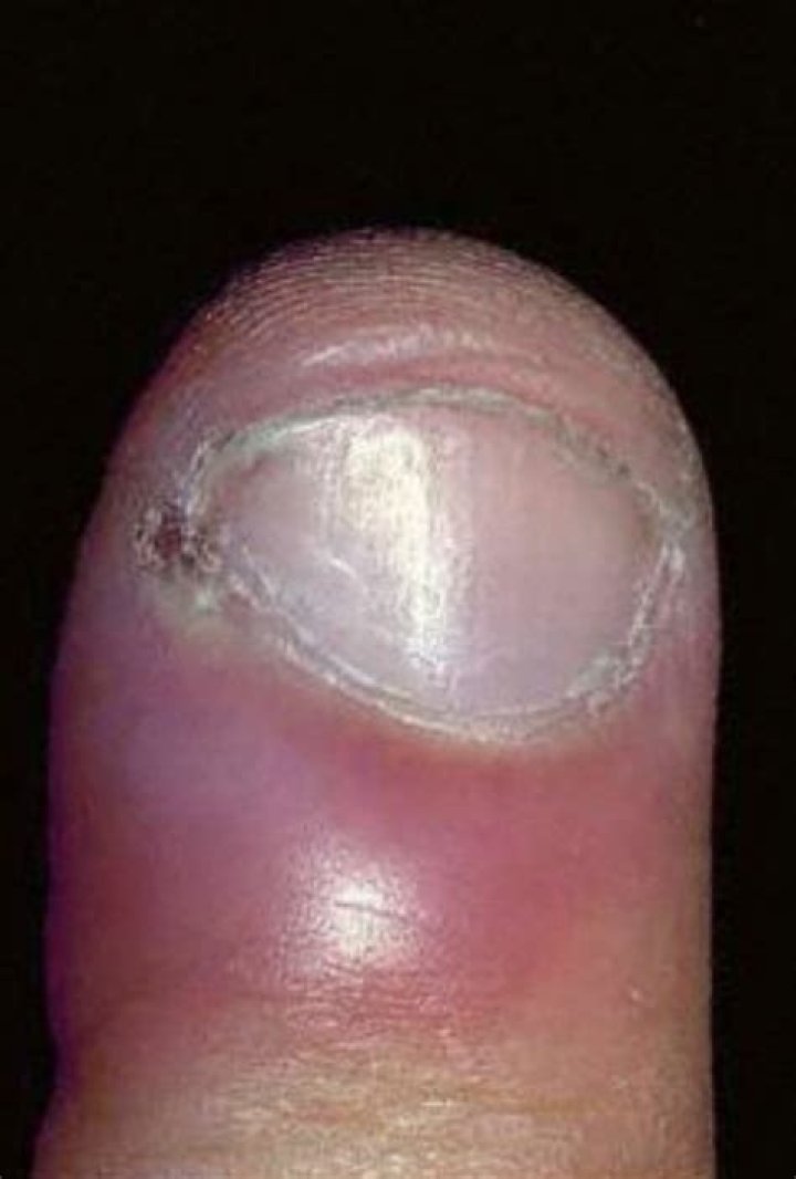 Chronic paronychia — This is an infection that usually develops slowly, causing gradual swelling, tenderness and redness of the skin around the nails. It usually is caused by Candida or other species of yeast (fungus). It often affects several fingers on the same hand.