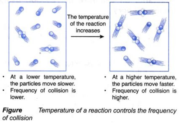 The collision theory explains why reactions occur between atoms, ions, and molecules. With an increase in temperature, there is an increase in the number of collisions. Increasing the concentration of a reactant increases the frequency of collisions between reactants and will, therefore, increase the reaction rate.