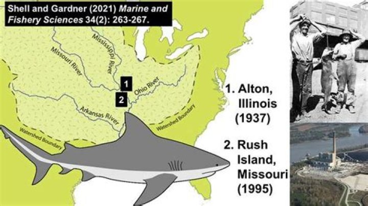 In 1937, a five-foot long bull shark was caught by two fishermen at Alton. This is the farthest inland a shark has been known to travel within the Mississippi River. Some sightings were determined to be mere fabrications — including reports of bull shark teeth being found in Minnehaha Creek in Minnesota in 2005.
