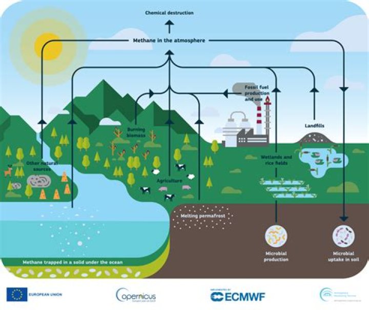 Human activities emitting methane include leaks from natural gas systems and the raising of livestock. Methane is also emitted by natural sources such as natural wetlands. In addition, natural processes in soil and chemical reactions in the atmosphere help remove CH4 from the atmosphere.