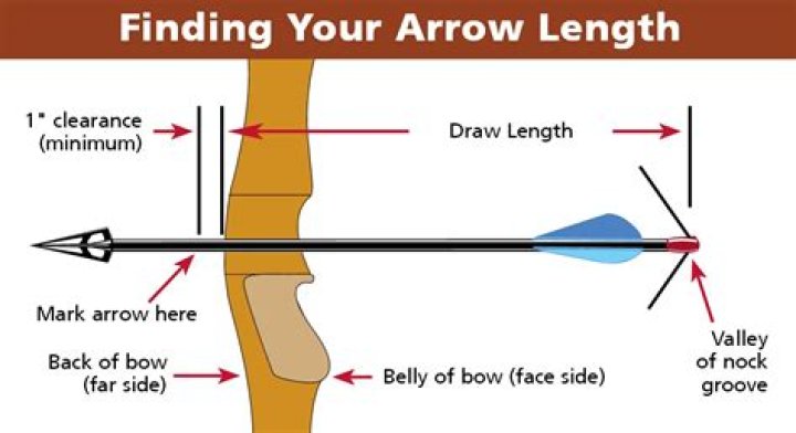You simple take your draw length and add 0.5″ up to a maximum 1″ to determine appropriate arrow length. So if your draw length is 28″, you should get arrows with a maximum length of 29″. What this will do is give you an arrow that will be just long enough to clear the front-most part of the arrow shelf.