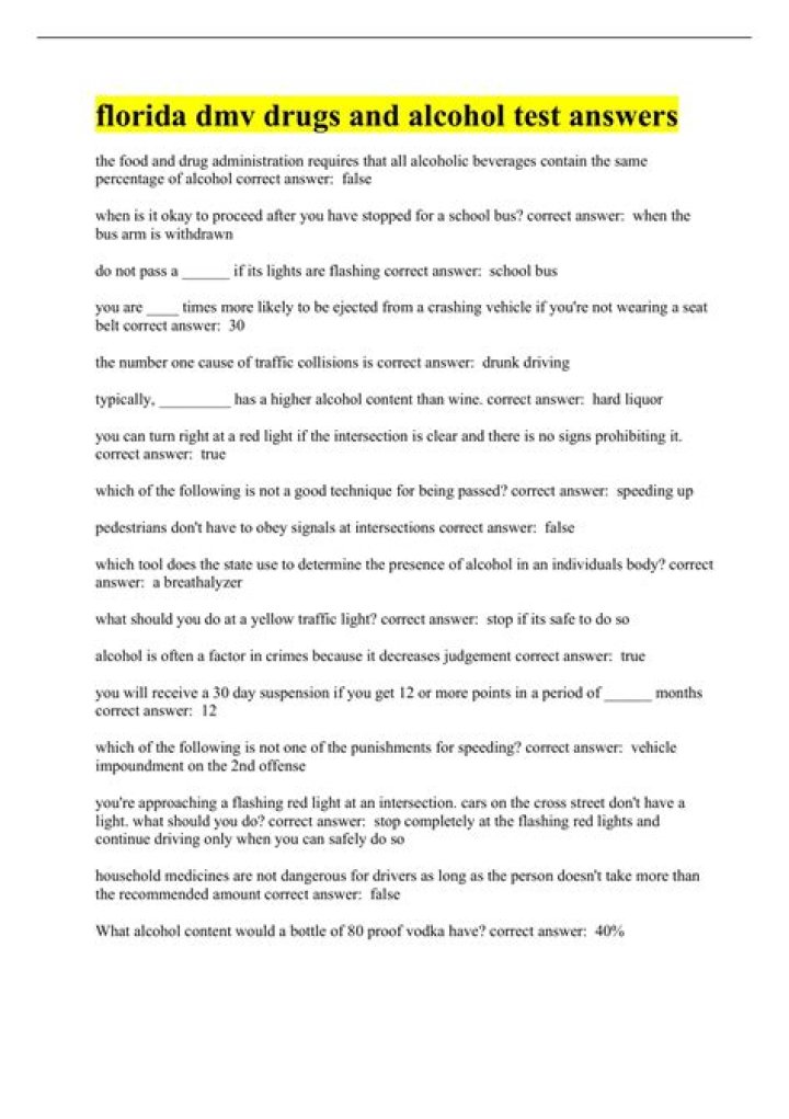 About the Florida Drug and Alcohol Course Test For the final exam, you must score at least 80% to pass. The exam has 40 questions, and you have up to three hours to finish.