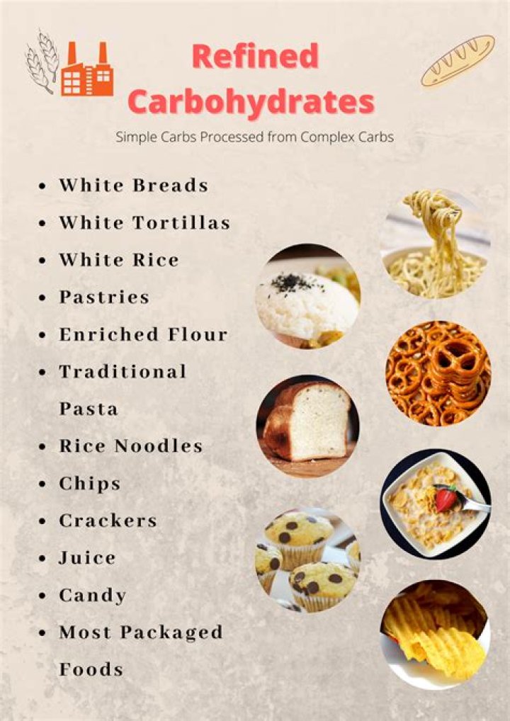 The main dietary sources of refined carbs are white flour, white bread, white rice, pastries, sodas, snacks, pasta, sweets, breakfast cereals and added sugars. They are also added to all sorts of processed foods. Bottom Line: Refined carbs include mostly sugars and processed grains.
