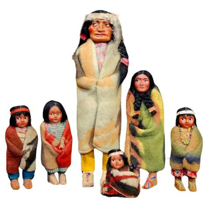 They came in a variety of sizes, from a 2-inch model used as part of a souvenir mailer to a 36-inch size that is very hard to find. Family groups (man, woman and child) in this larger size have been known to sell for close to $6,000 and other unusual Skookum dolls can bring prices in the $500 to $1,000 range.
