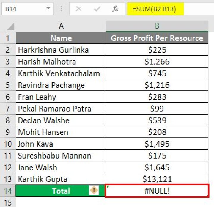 Is null in Excel formula?
