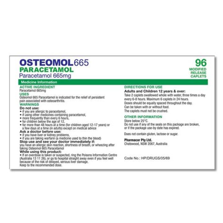 Because Osteomol 665 Paracetamol is a sustained release formulation of paracetamol, absorption will be prolonged in overdose.