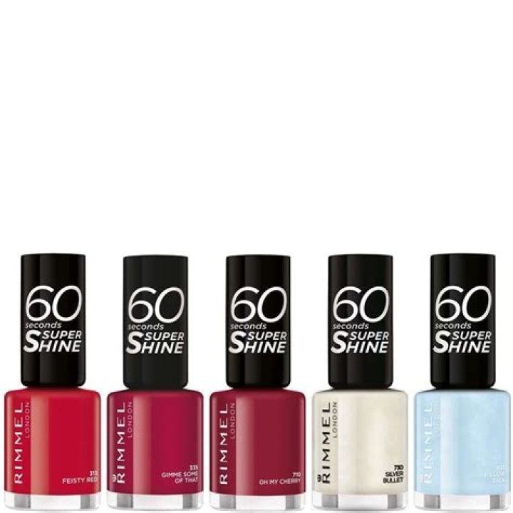Product Information. 60 Seconds Super Shine nail polish from Rimmel London dries in less than 60 seconds for anti-fade high shine bold chip resistant colour lasting up to 10 days with a precision brush for quick one stroke application.