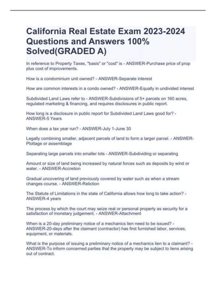 Pass the 2021 California Real Estate Salesperson Exam effortlessly on your 1st try with the Questions, Answers and Explanations to the exam. … It includes a real estate MATH ONLY portion, a real estate vocabulary exam as well as the California state exam questions and answers.