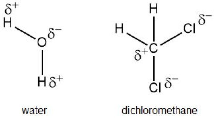 Organic solvents like dichloromethane are immiscible in water because water is, by contrast, a very polar solvent. However, DCM is actually denser than water, and leaves an organic layer below the aqueous layer rather than above like other solvents.
