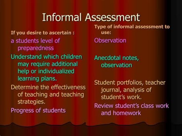 What are examples of informal assessments?
