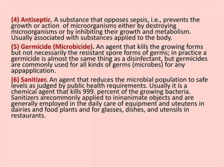 For example, a germicide is an agent that can kill microorganisms, particularly pathogenic organisms (“germs”). The term germicide includes both antiseptics and disinfectants. Antiseptics are germicides applied to living tissue and skin; disinfectants are antimicrobials applied only to inanimate objects.