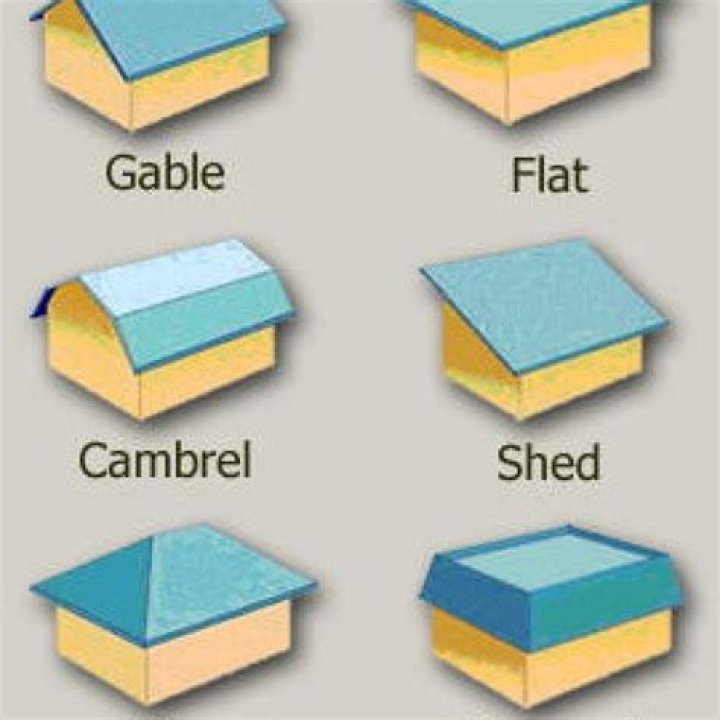 | Flat roof | Single-pitched (or shed) roof | Gable roof with catslide |