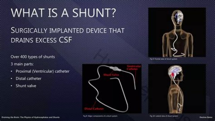 A shunt is a hollow tube surgically placed in the brain (or occasionally in the spine) to help drain cerebrospinal fluid and redirect it to another location in the body where it can be reabsorbed.