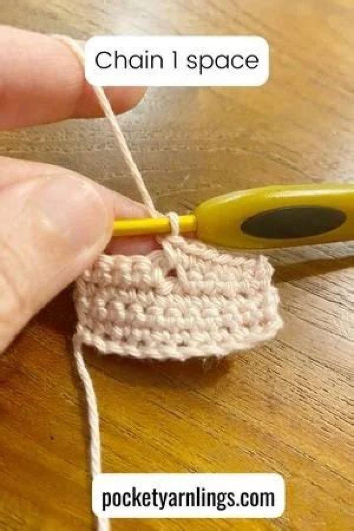 chain 2 sp = chain 2 space. sc in ch 1 sp = single crochet in chain 1 space.