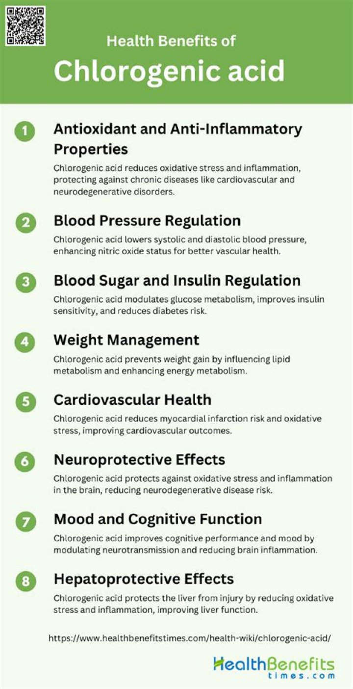 Chlorogenic acid (CGA) lowers the blood glucose concentrations and inhibits G-6-Pase, the two main metabolic pathways responsible for the release of glucose from the liver [36, 67, 70–72].