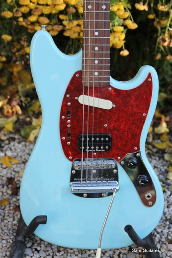 Inspired by Kurt Cobain Kurt favored heavily-modded Mustangs – they were lightweight and easy to play, they were usually inexpensive, and were easy enough to modify if he wanted. The Kurt Cobain Mustang doesn’t feature the all the traditional Mustang appointments, but that’s how Kurt liked it.