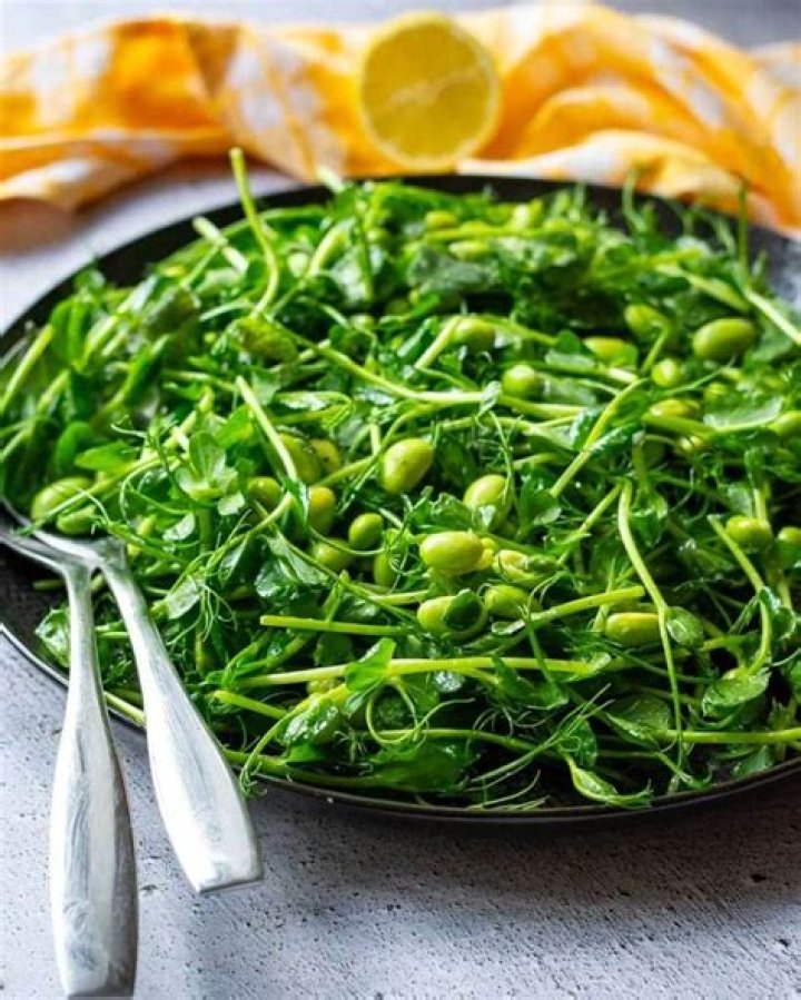 How do I eat pea shoots? Very young shoots are best eaten raw in salads, where they add a sweet, subtly grassy flavor and crisp texture. Use larger shoots in stir-frys or any dish where you’d use lightly cooked spinach or Swiss chard.