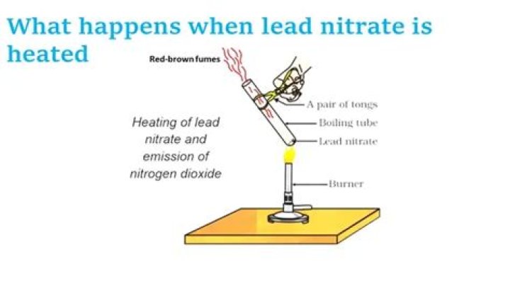 When lead nitrate is heated it decomposes to form lead oxide, nitrogen dioxide and oxygen.