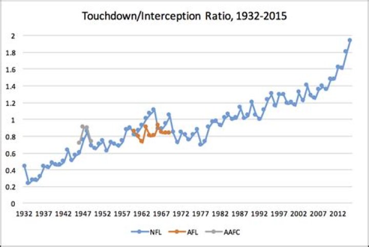 Very good NFL seasons will see a quarterback have a TD to INT ratio of over 2 with elite seasons over 3.5. For example, during the 2012 NFL season, Green Bay Packers QB Aaron Rodgers had 39 passing touchdowns vs.