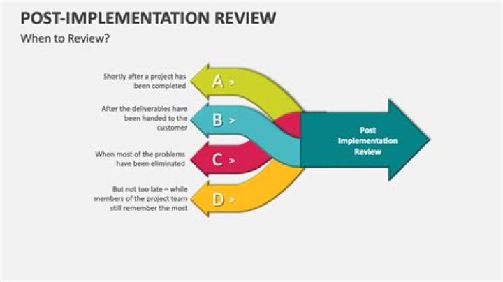 When to conduct a Post Implementation Review? The best time to conduct a Post Implementation Review is between 1 and 6 months after a project has completed. By then, the project deliverables will have been handed over to the customer and the benefits of the project will be clear.