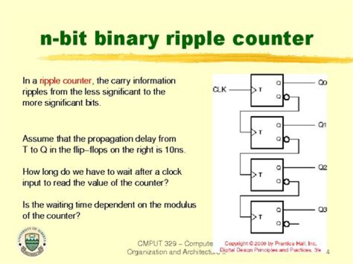 A n-bit ripple counter can count up to 2n states. It is also known as MOD n counter. It is known as ripple counter because of the way the clock pulse ripples its way through the flip-flops.