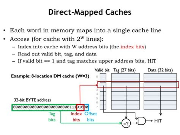 Direct mapped cache employs direct cache mapping technique. After CPU generates a memory request, The line number field of the address is used to access the particular line of the cache. The tag field of the CPU address is then compared with the tag of the line.