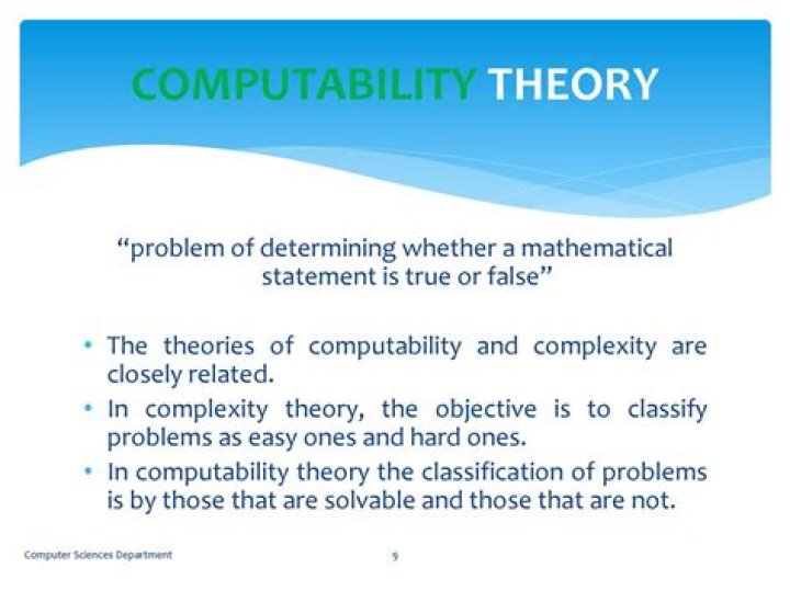 It leads to a classification of functions according their inherent complexity. For the computer scientist, computability theory shows that quite apart from practical matters of running time and memory space, there is a purely theoretical limit to what computer programs can do.