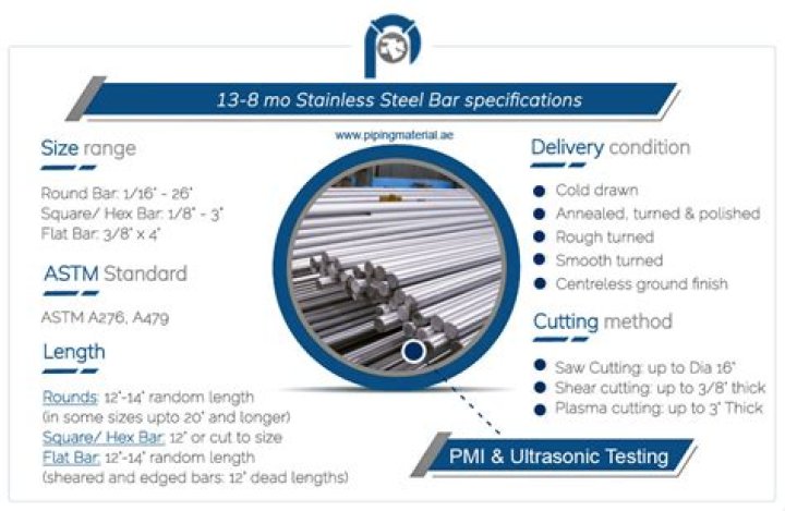 ARMCO PH 13-8 Mo is a martensitic precipitation hardening stainless steel. It provides a combination of excellent toughness and good transverse mechanical properties, in addition to having the highly desirable corrosion resistance and high strength of a precipitation hardening stainless steel.