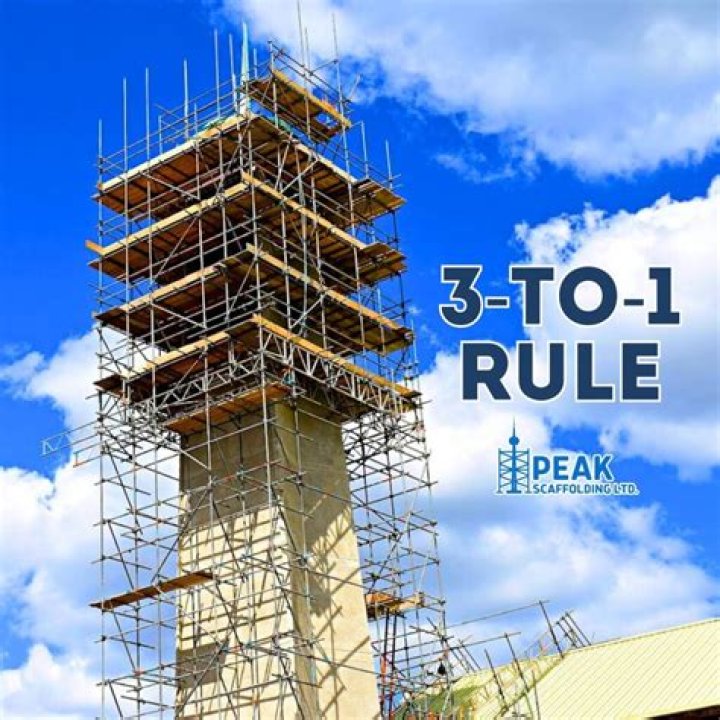 The 3 to 1 rule. The total working height of a freestanding scaffolding tower should be three (3) times the distance of the narrowest side of the base (if this is a measurement of outriggers, they must be set symmetrically about the tower). Always check for overhead power lines before moving any scaffolds.