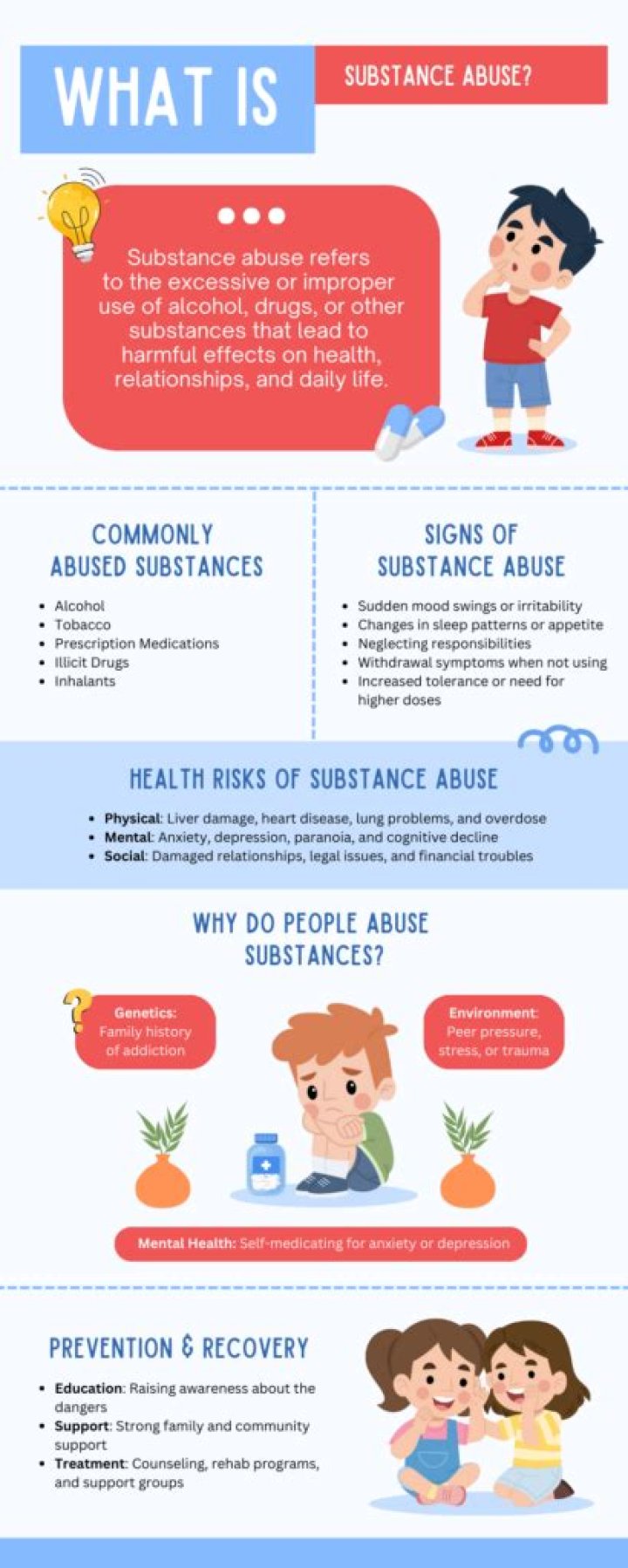 The use of illegal drugs or the use of prescription or over-the-counter drugs or alcohol for purposes other than those for which they are meant to be used, or in excessive amounts. Substance abuse may lead to social, physical, emotional, and job-related problems.