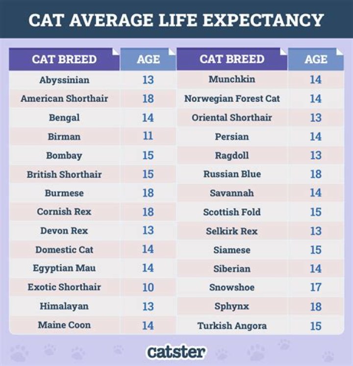 A tabby is not a breed of cat; tabbies are identified by specific patterns in their coats. These patterns occur in many different breeds along with an “M” marking of hair on the forehead. Each breed has its own estimated life span, but in general, indoor cats can live 12 to 18 years and even well into their 20s.