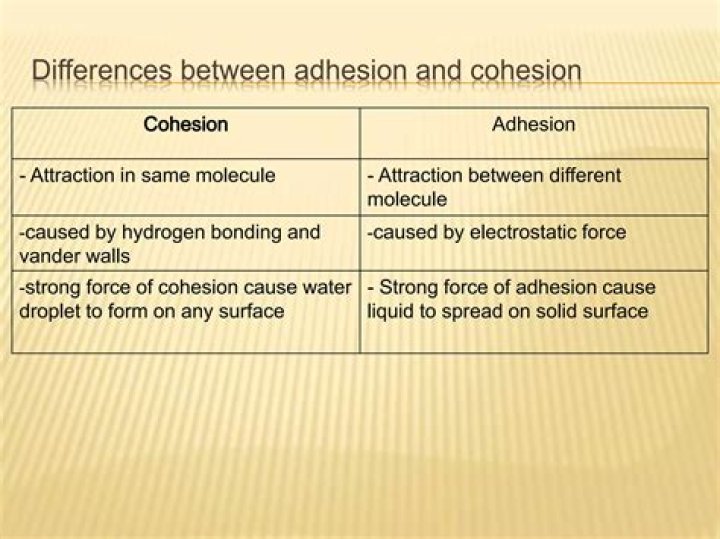 How can you tell the difference between adhesion and cohesion?