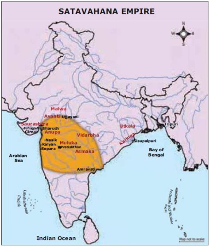 The Satavahana kingdom mainly comprised the present-day Andhra Pradesh, Telangana, and Maharashtra. At different times, their rule extended to parts of modern Gujarat, Madhya Pradesh, and Karnataka.