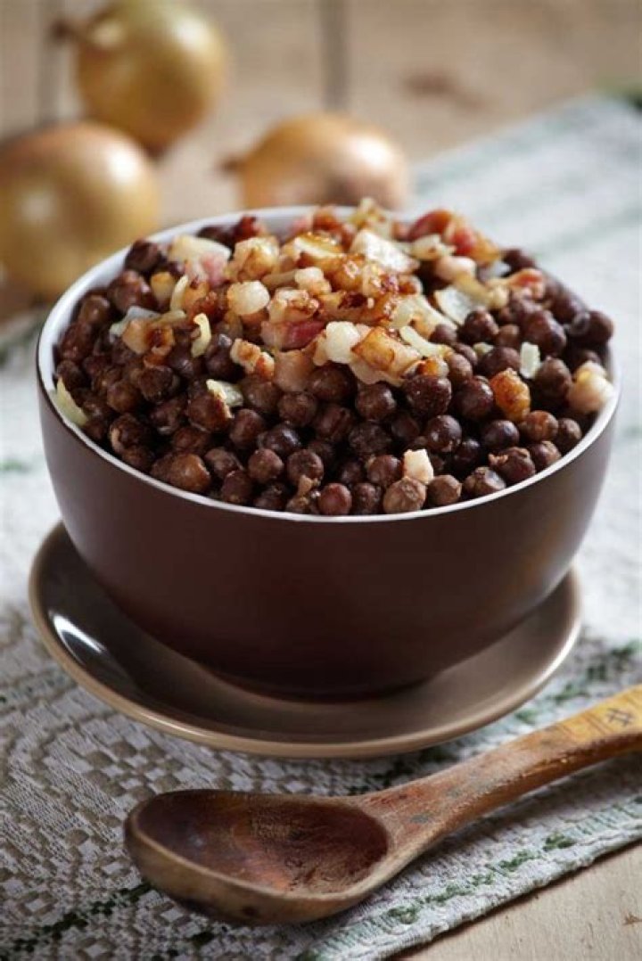 Pelēkie zirņi ar speķi is the national dish of Latvia. This type of stew is made with local grey peas (similar to chickpeas), fried onions, and diced speck. The dish was invented when locals used their supplies of dried and preserved food.