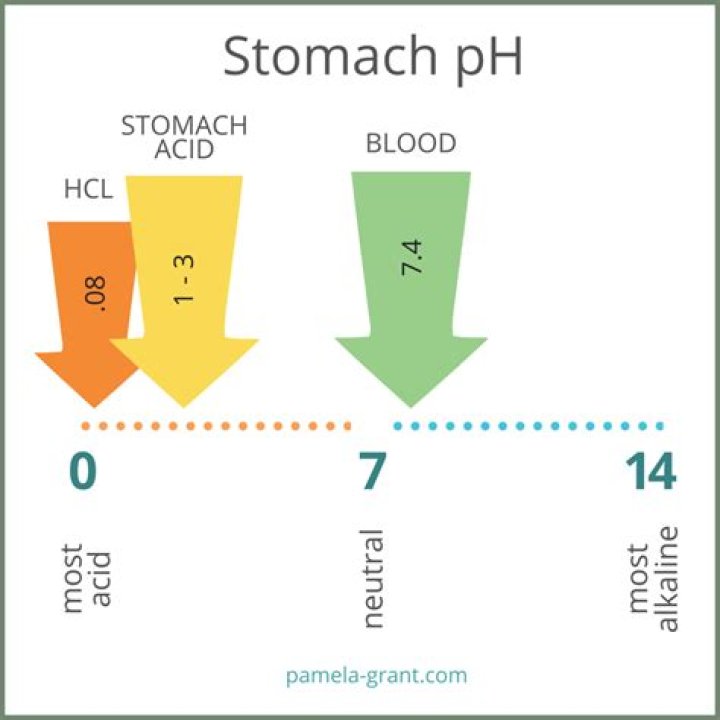 Anything below 7.0 (ranging from 0.0 to 6.9) is acidic, and anything above 7.0 (from 7.1 to 14.0) is alkaline. The blood in your veins is slightly alkaline (pH = 7.4). The environment in your stomach is highly acidic (pH = 1 to 2).